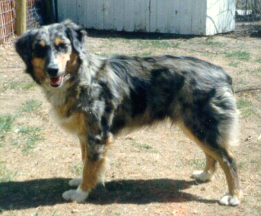 Shep was an "Aussie" of questionable background - possibly an Aussie/Border Collie mix. He was our first dog, and our introduction to the Australian Shepherd breed. He was very intelligent, loyal, and a super frisbee dog! We still miss him!